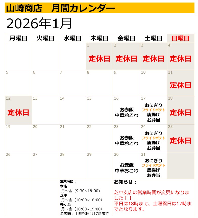 定休日:日曜日