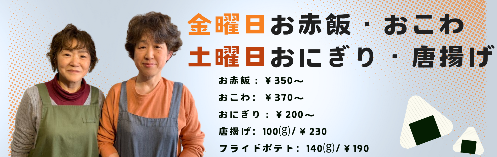 - おにぎり値上げのお知らせ平素よりお世話になっております。 大変不本意ながら、米価やその他食材や資材の高騰により昨年まで頑張ってきたおに… 続きを読む: おにぎり値上げのお知らせ